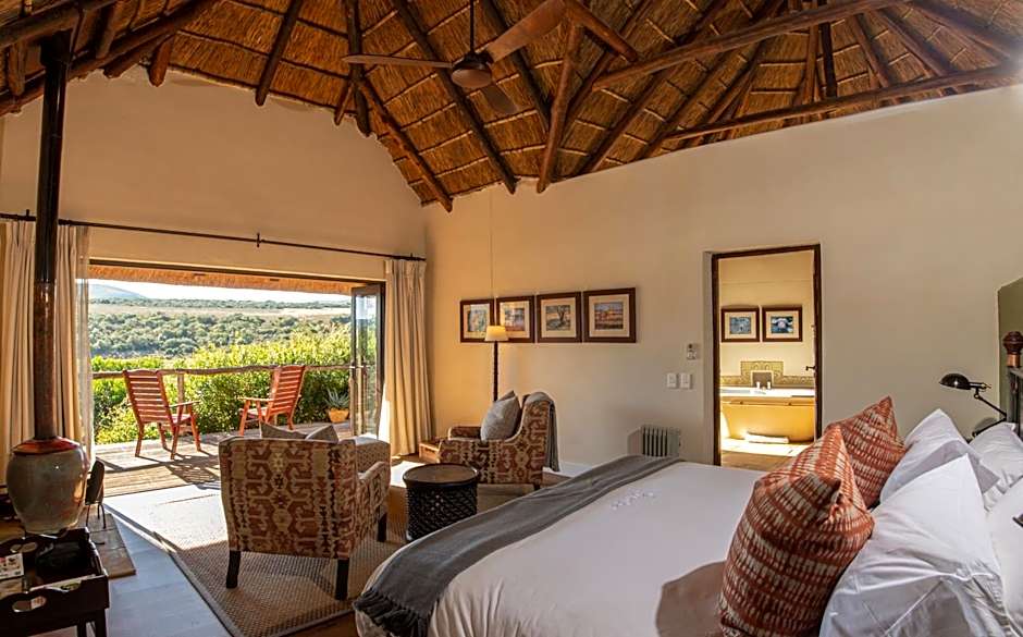 This air-conditioned chalet features a private plunge pool from your own wooden deck overlooking the African bush. Spacious, luxury interiors include high thatched-roof ceilings, large windows and a private bathroom.